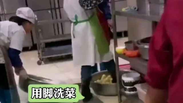 没想到学生的担心并不是空穴来风,也不是杞人忧天。本来就让学生不放心的学校食堂,居然会出现用脚洗菜这样的情况,简直让人震惊。